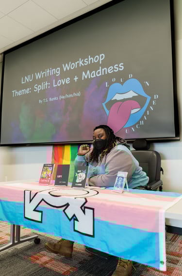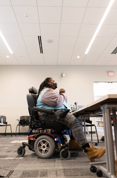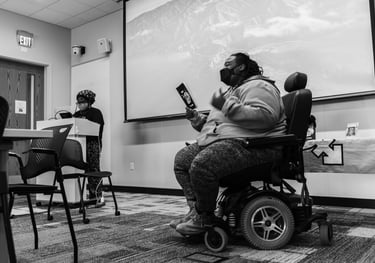 We decided to photograph him hosting his writing workshop at the Madison Public Library since writing and community are two important things to Ti. And on the topic of writing, a piece on Disability Pride Month and the ADA written by Ti will accompany these photos.